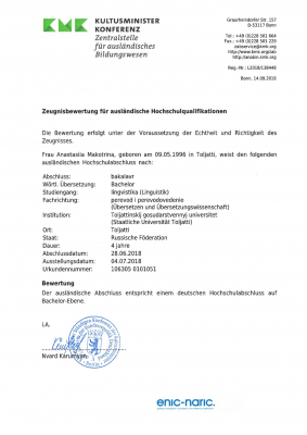 Weitere Leistungen: Schulungen von Übersetzern und Dolmetschern, Vorbereitung von Portfolios und anderen Dokumenten für die Arbeitssuche, Redigieren und Korrekturlesen, notarielle Beglaubigung von Übersetzungen, sowie Unterstützung bei der Gründung von Geschäften in der GUS und Europa.